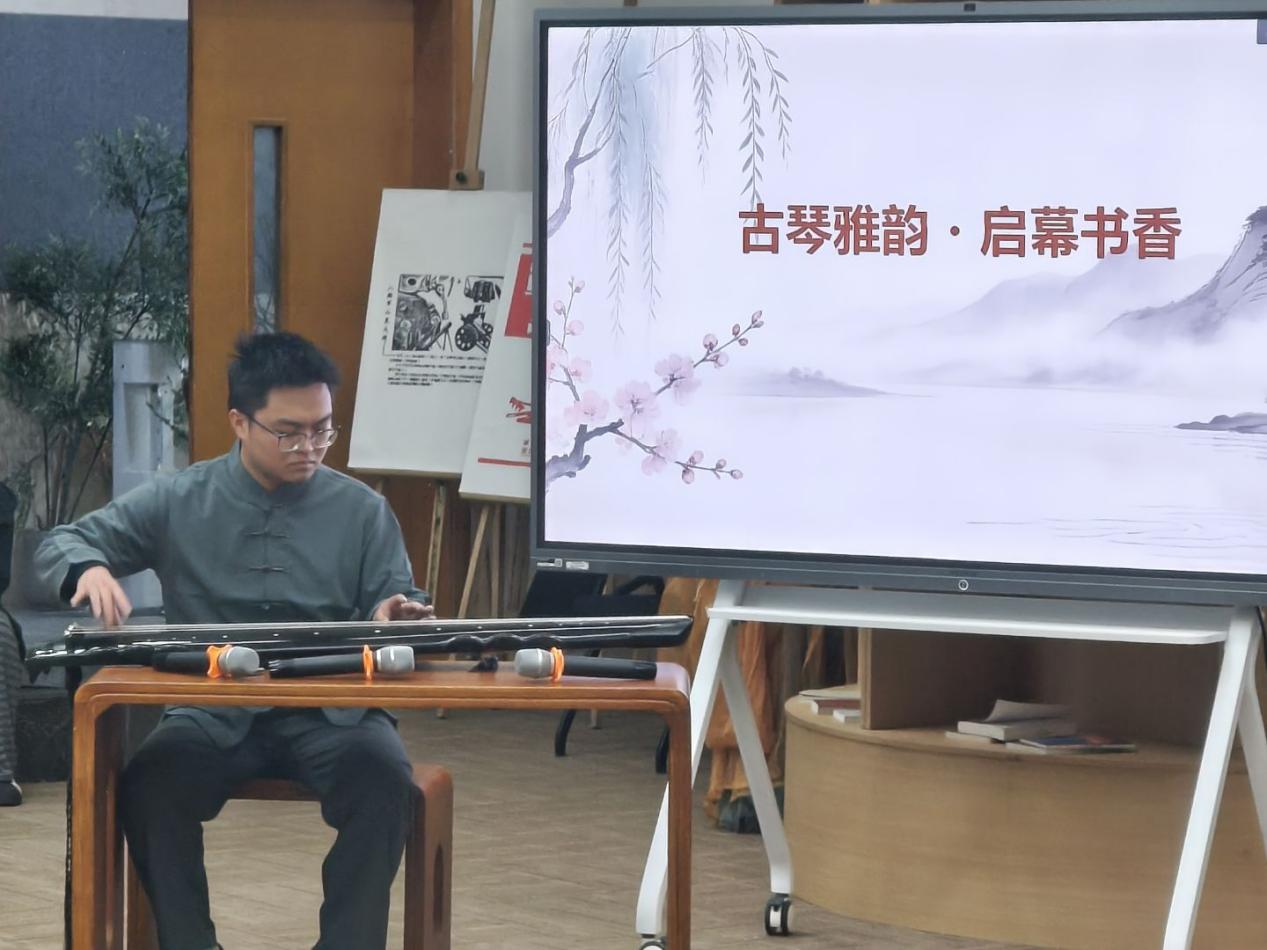 读书润心、琴韵传情,古琴协会的同学紧接着带来了《韦编三绝》开场演奏。该曲讲述了孔子万年钻研周易的典故,也讲天地、讲乾坤、讲阴阳。悠悠琴音中,在场观众一起沉浸其中体会天地与万物。