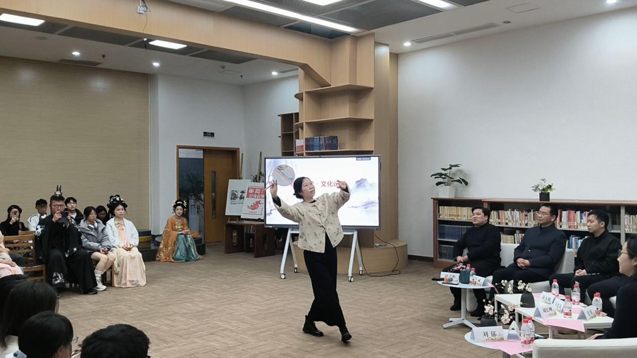 在随性、热烈的研讨氛围中,刘郁教授即兴起舞,带来一段优雅的《红楼梦》团扇古典舞,周长峰书记也一展歌喉,现场吟唱《诗经》精彩片段,嘉宾们的热烈互动将现场气氛推向新高。