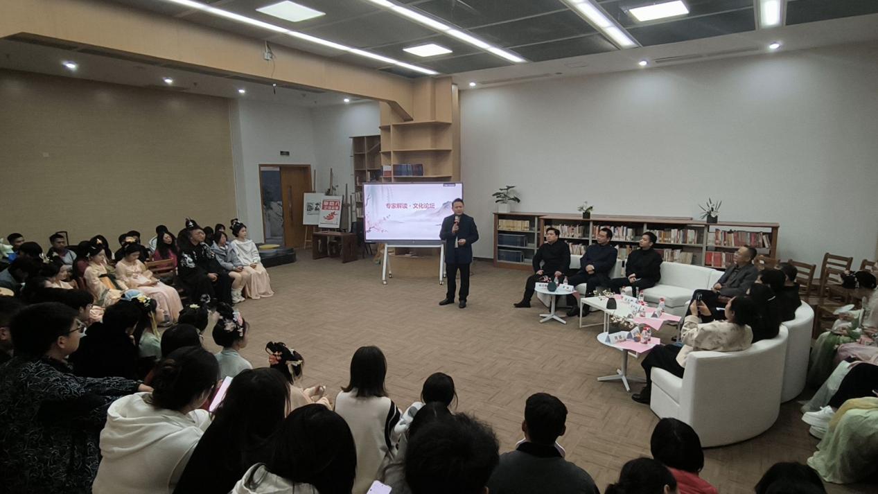 备受瞩目的“专家解读・文化论坛”环节,在刘青衢博士的主持下顺利开展。赵院长、朱书记、刘教授、张教授和郑总编多位嘉宾围绕贵州大学诗歌文化,从读书、创作、传承、生活体验等方面分享了见解,倡导同学们多读书、读好书。张教授则围绕诗词与阳明心学展开,探讨了王阳明先生在贵州的经历、成就及阳明心学内涵。